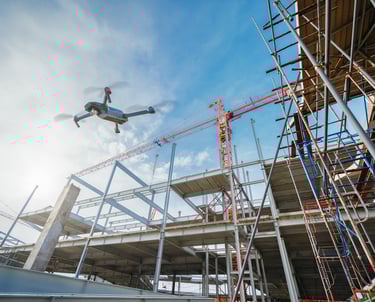 A utilização de drones permite realizar inspeções e levantamentos com maior segurança, rapidez e precisão, especialmente em áreas de difícil acesso ou grande altura.