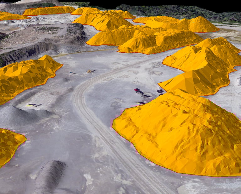 Utilizamos dados obtidos por levantamento com drone para calcular com precisão o volume de materiais presentes em uma área.